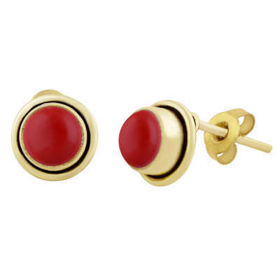 Home | Fashion Earrings | Brass Gemstone Studs | Plain Wire Around Coral Round Shape Solid Brass Studs Earrings