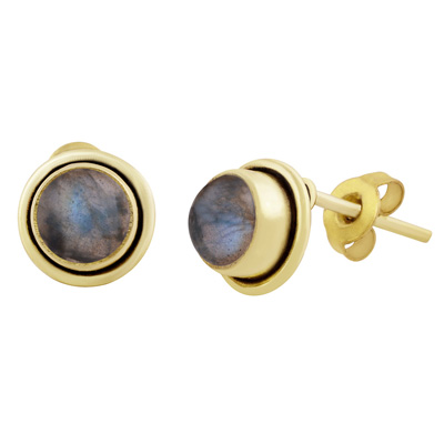 Home | Fashion Earrings | Brass Gemstone Studs | Plain Wire Around Labradorite Round Shape Solid Brass Studs Earrings