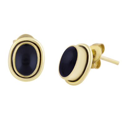 Home | Fashion Earrings | Brass Gemstone Studs | Plain Wire Around Black Onyx Oval Shape Solid Brass Studs Earrings