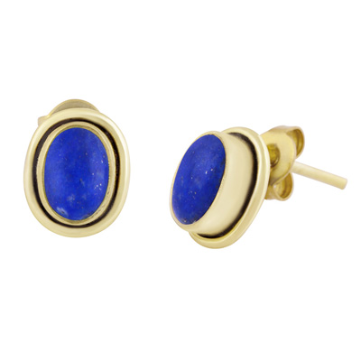 Home | Fashion Earrings | Brass Gemstone Studs | Plain Wire Around Lapis Oval Shape Solid Brass Studs Earrings