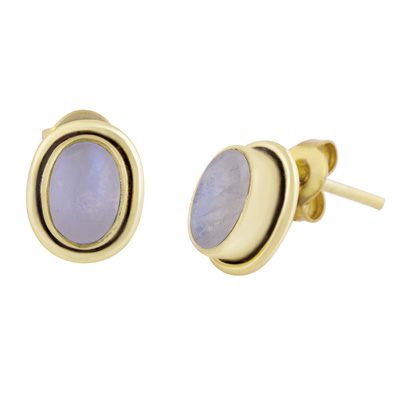 Home | Fashion Earrings | Brass Gemstone Studs | Plain Wire Around Rainbow Moonstone Oval Shape Solid Brass Studs Earrings