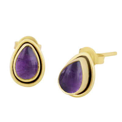 Home | Fashion Earrings | Brass Gemstone Studs | Plain Wire Around Amethyst Pear Shape Solid Brass Studs Earrings