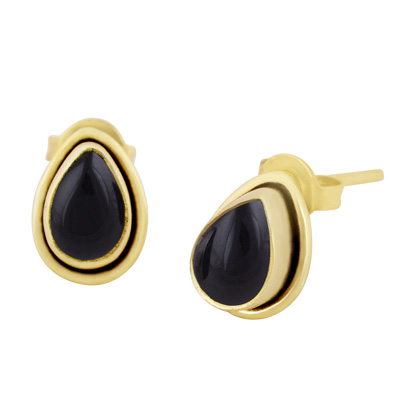 Home | Fashion Earrings | Brass Gemstone Studs | Plain Wire Around Black Onyx Pear Shape Solid Brass Studs Earrings