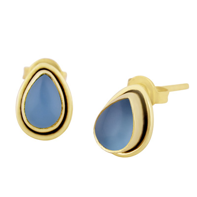 Home | Fashion Earrings | Brass Gemstone Studs | Plain Wire Around Blue Chalcedony Pear Shape Solid Brass Studs Earrings