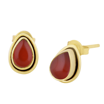Home | Fashion Earrings | Brass Gemstone Studs | Plain Wire Around Carnelian Pear Shape Solid Brass Studs Earrings