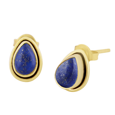 Home | Fashion Earrings | Brass Gemstone Studs | Plain Wire Around Lapis Pear Shape Solid Brass Studs Earrings