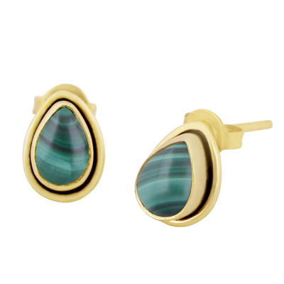 Home | Fashion Earrings | Brass Gemstone Studs | Plain Wire Around Malachite Pear Shape Solid Brass Studs Earrings
