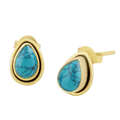 Home | Fashion Earrings | Brass Gemstone Studs | Plain Wire Around Turquoise Pear Shape Solid Brass Studs Earrings