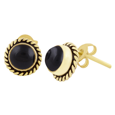 Home | Fashion Earrings | Brass Gemstone Studs | Authentic Wire Work Around Black Onyx Round Shape Solid Brass Studs Earrings