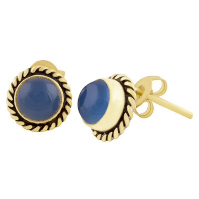 Home | Fashion Earrings | Brass Gemstone Studs | Authentic Wire Work Around Blue Chalcedony Round Shape Solid Brass Studs Earrings