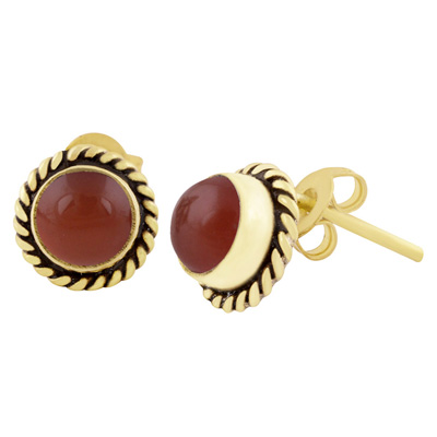 Home | Fashion Earrings | Brass Gemstone Studs | Authentic Wire Work Around Carnelian Round Shape Solid Brass Studs Earrings