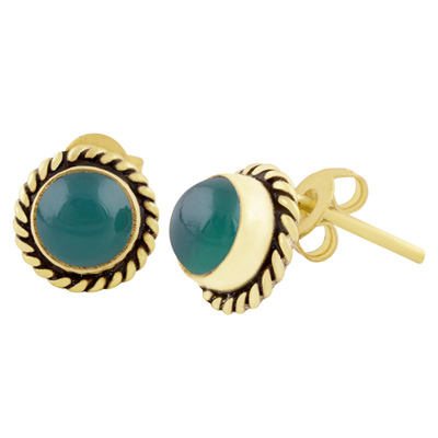 Home | Fashion Earrings | Brass Gemstone Studs | Authentic Wire Work Around Green Onyx Round Shape Solid Brass Studs Earrings
