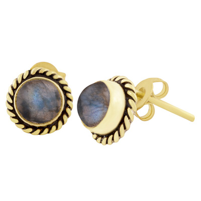 Home | Fashion Earrings | Brass Gemstone Studs | Authentic Wire Work Around Labradorite Round Shape Solid Brass Studs Earrings