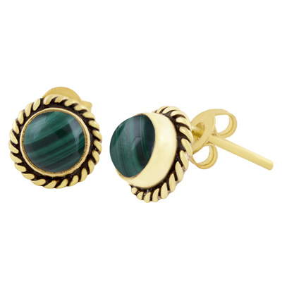 Home | Fashion Earrings | Brass Gemstone Studs | Authentic Wire Work Around Malachite Round Shape Solid Brass Studs Earrings