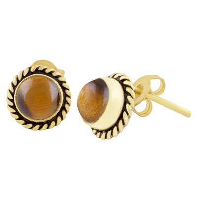 Home | Fashion Earrings | Brass Gemstone Studs | Authentic Wire Work Around Tiger's Eye Round Shape Solid Brass Studs Earrings