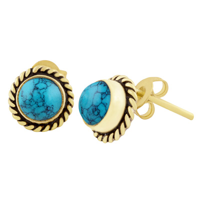 Home | Fashion Earrings | Brass Gemstone Studs | Authentic Wire Work Around Turquoise Round Shape Solid Brass Studs Earrings
