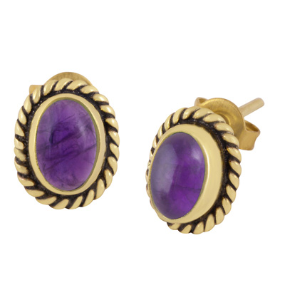 Home | Fashion Earrings | Brass Gemstone Studs | Authentic Wire Work Around Amethyst Oval Shape Solid Brass Studs Earrings