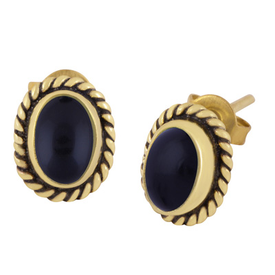 Home | Fashion Earrings | Brass Gemstone Studs | Authentic Wire Work Around Black Onyx Oval Shape Solid Brass Studs Earrings