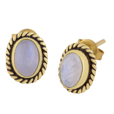 Home | Fashion Earrings | Brass Gemstone Studs | Authentic Wire Work Around Rainbow Moonstone Oval Shape Solid Brass Studs Earrings