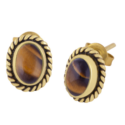 Home | Fashion Earrings | Brass Gemstone Studs | Authentic Wire Work Around Tiger's Eye Oval Shape Solid Brass Studs Earrings