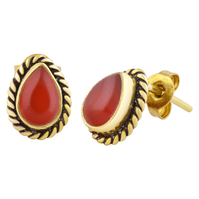 Home | Fashion Earrings | Brass Gemstone Studs | Authentic Wire Work Around Carnelian Pear Shape Solid Brass Studs Earrings