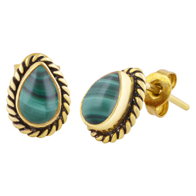 Home | Fashion Earrings | Brass Gemstone Studs | Authentic Wire Work Around Malachite Pear Shape Solid Brass Studs Earrings