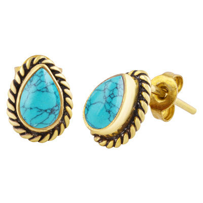 Home | Fashion Earrings | Brass Gemstone Studs | Authentic Wire Work Around Turquoise Pear Shape Solid Brass Studs Earrings