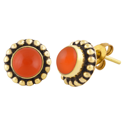 Home | Fashion Earrings | Brass Gemstone Studs | Classic Rawa Work Around Carnelian Round Shape Solid Brass Studs Earrings