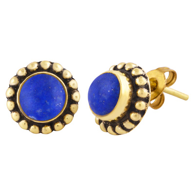 Home | Fashion Earrings | Brass Gemstone Studs | Classic Rawa Work Around Lapis Round Shape Solid Brass Studs Earrings