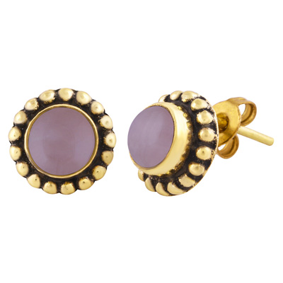 Home | Fashion Earrings | Brass Gemstone Studs | Classic Rawa Work Around Rose Quartz Round Shape Solid Brass Studs Earrings