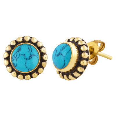 Home | Fashion Earrings | Brass Gemstone Studs | Classic Rawa Work Around Turquoise Round Shape Solid Brass Studs Earrings
