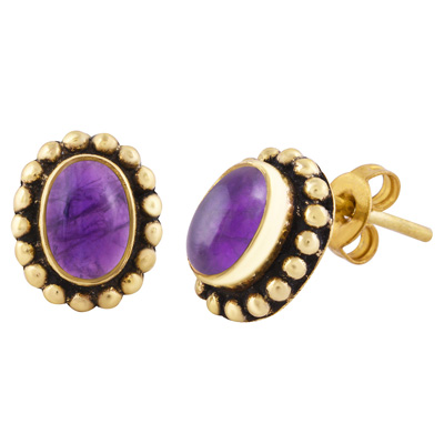 Home | Fashion Earrings | Brass Gemstone Studs | Classic Rawa Work Around Amethyst Oval Shape Solid Brass Studs Earrings