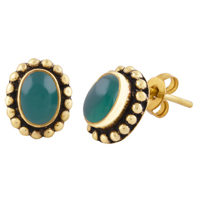 Home | Fashion Earrings | Brass Gemstone Studs | Classic Rawa Work Around Green Onyx Oval Shape Solid Brass Studs Earrings