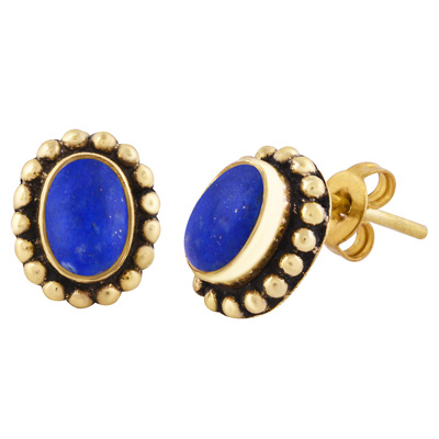Home | Fashion Earrings | Brass Gemstone Studs | Classic Rawa Work Around Lapis Oval Shape Solid Brass Studs Earrings