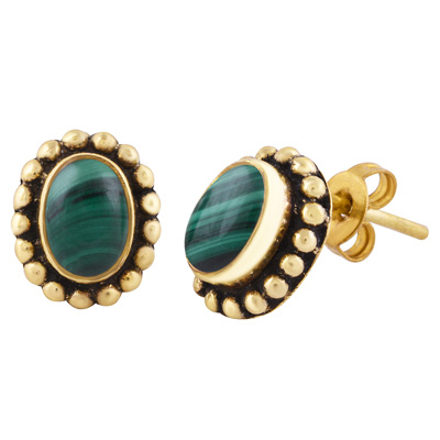 Home | Fashion Earrings | Brass Gemstone Studs | Classic Rawa Work Around Malachite Oval Shape Solid Brass Studs Earrings