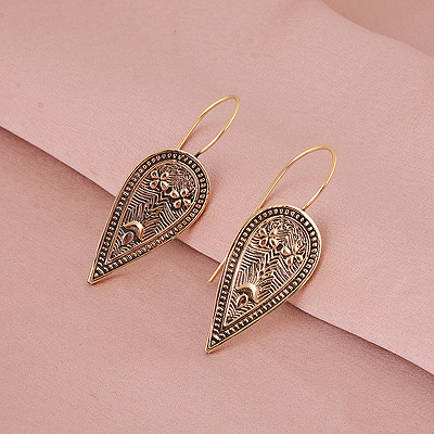 Home | Fashion Earrings | Brass Plain Earrings | Gorgeous Handcrafted Pattern Work On Plain Solid Brass Dangle Earrings