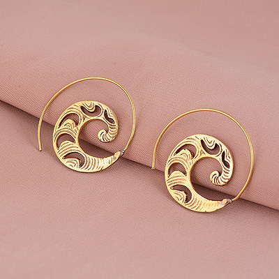 Home | Fashion Earrings | Brass Plain Earrings | Beautiful Cut Work Around Plain Solid Brass Spiral Earrings