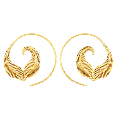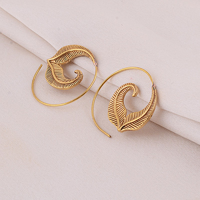 Home | Fashion Earrings | Brass Plain Earrings | Beautifully Oxidised Leaves Plain Solid Brass Spiral Earrings
