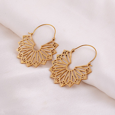 Home | Fashion Earrings | Brass Plain Earrings | Gorgeous Wing Pattern Plain Solid Brass Hoop Earrings