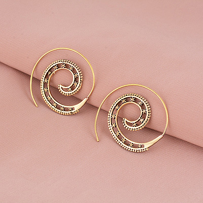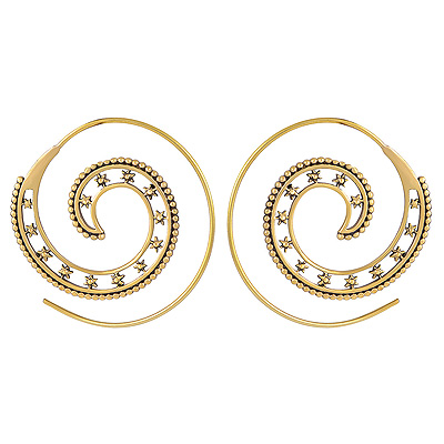 Home | Fashion Earrings | Brass Plain Earrings | Alluring Star Pattern Around Plain Solid Brass Spiral Earrings