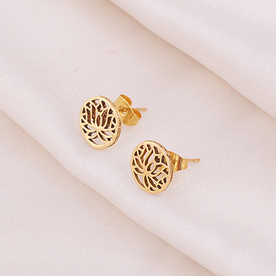 Home | Fashion Earrings | Brass Plain Studs | Beautiful Lotus Flower Design Plain Solid Brass Studs Earrings