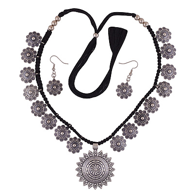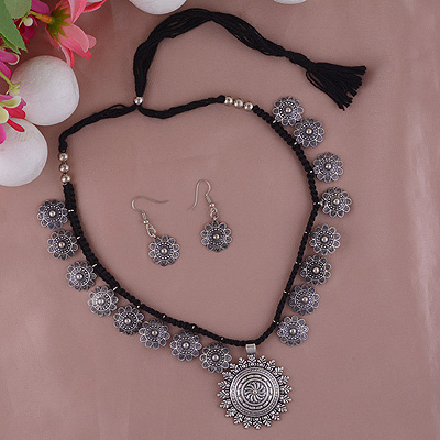 Stunning Lord Radha Krishna w/ flowers Around Plain German Silver Jewellery Necklaces Sets