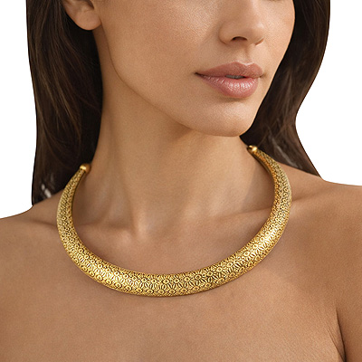 Home | Fashion Necklaces | Brass Plain Necklaces | Gorgeous Pattern Around Plain Solid Brass Choker Necklace