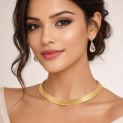 Home | Fashion Necklaces | Brass Plain Necklaces | Alluring Texture Around Plain Solid Brass Choker Necklace