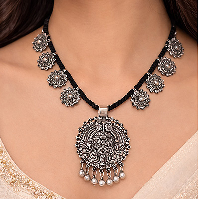 Alluring Oxidised Vintage Patterned Plain German Silver Jewellery Necklaces