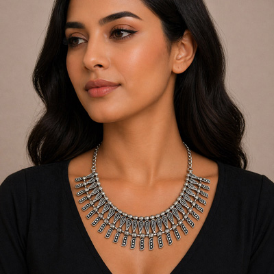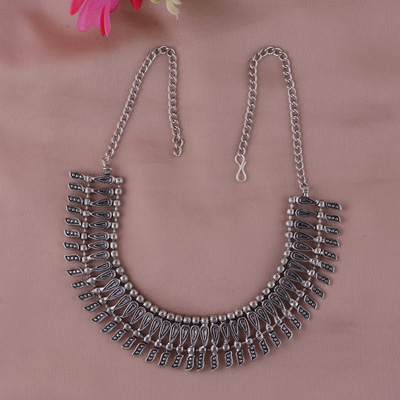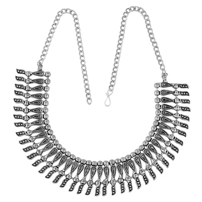 Beautiful Oxidised Two Layer Patterned Plain German Silver Necklaces
