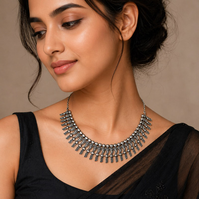 Home | Fashion Necklaces | German Silver Plain Necklaces | Beautiful Oxidised Vintage Patterned Plain German Silver Necklaces