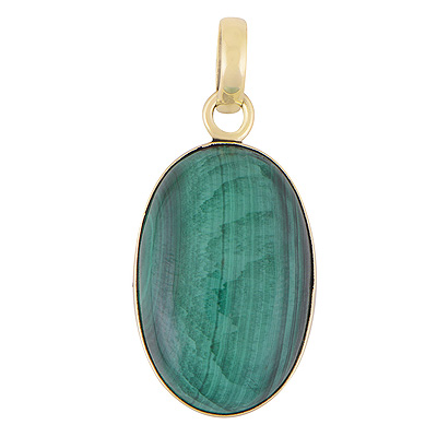 Gorgeous Plain Collet Malachite Oval Shape Solid Brass Pendant