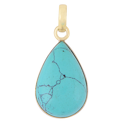 Home | Fashion Pendants | Brass Gemstone Pendants | Gorgeous Plain Collet Turquoise Pear Shape Solid Brass Pendant