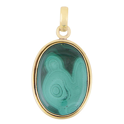 Stunning Plain Wire Work Around Malachite Oval Shape Solid Brass Pendant